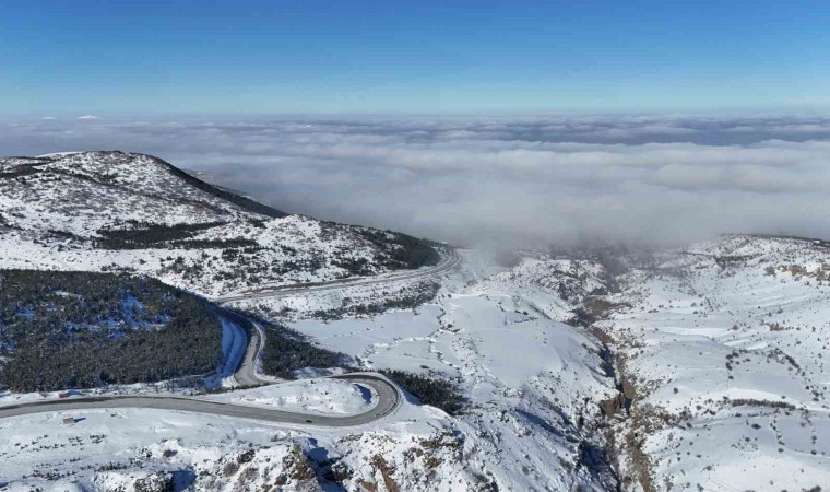Şehir merkezini sabah saatlerinde etkisi altına alan sis, seyrine doyum olmayacak görüntüler oluşturdu. Özellikle Hisarcık’tan Erciyes istikametine çıkış güzergahında evler sis altında kalırken, ortaya kartpostallık görüntüler çıktı. Kar yağmasıyla birlikte yeşil ile beyazın buluştuğu kıvrımlı Erciyes yolu da dron ile görüntülenirken, sisler arasından 2 bin metre yükseklikteki zirvesini çıkaran Ali Dağı da Erciyes’ten şehir merkezine inen vatandaşları selamladı.
