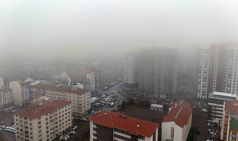 Kayseri’de etkili olan yoğun sis görüş mesafesini düşürdü.