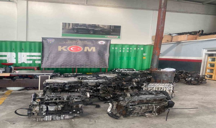 Kayseri’de polis ekipleri tarafından bir iş yerine düzenlenen operasyonda piyasa değeri yaklaşık 3 milyon TL olan 30 adet kaçak otomobil motoru ele geçirildi.