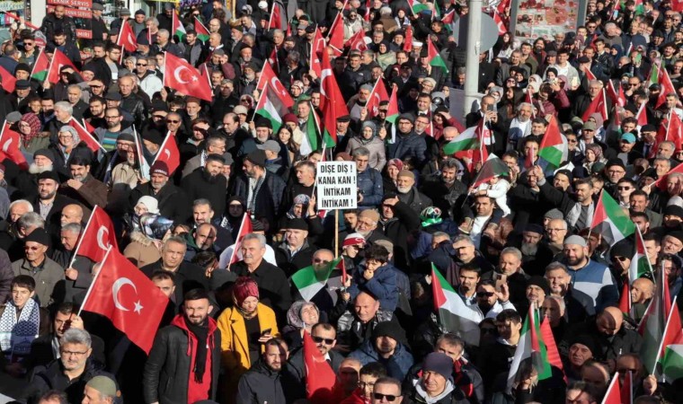 Kayseri’de toplanan binlerce kişi, Filistin’e özgürlük için yürüdü. 410 metre uzunluğunda Türk bayrağının açıldığı yürüyüşte dün gece şehit olan askerlerinde isimleri okundu.