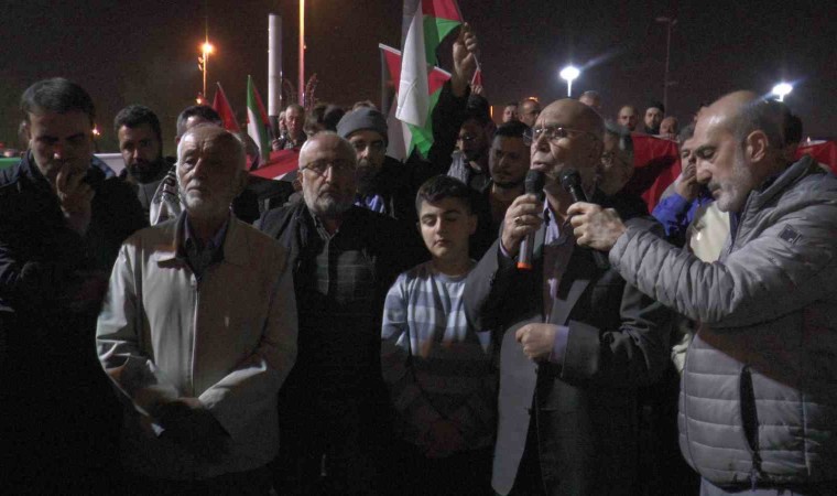 İsrail’in bir başkenti olmadığını ve oradaki toprakların Filistin’e ait olduğunu söyleyen Saadet Partisi Kayseri İl Başkanı Baki Coşkun, “1948 yılında kurmuş oldukları katil devletle birlikte Filistin’i kademe kademe işgal ederek oradaki Filistinli kardeşlerimize zulmetmeye devam ettiler. Müslümanlar o gün gösterdiği tepkide belki bugün de artık ortak bir devlet söylemine geldi maalesef. Orası Filistin’dir, orası Filistinlilere aittir. İsrail diye bir devlet yoktur. İsrail’in başkenti diye bir başkent yoktur. Her defasında ifade ediyoruz İsrail’in tek bir başkenti var orası da cehennemin dibidir. Bugün bütün Müslümanlar kıyama kalkmış durumda. Biz bugün burada toplanırken, sadece Filistinli kardeşlerimize destek olmuyoruz. Aynı zamanda bizim hükümetlerimize, Müslüman hükümetlere de sesleniyoruz. Burada Müslümanlar zulüm görürken sizin oradan sadece basit kınamalarla geçiştirmenizi Müslüman topluluğu kabul etmiyor. Nasıl ki 1997 yılında rahmetli Erbakan hocamız Gazze’ye asker göndermişse bugün de meclisten aynı tepkiyi, askeri tepkiyi, diplomatik tepkileri bekliyoruz” dedi.
