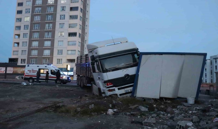 Kayseri’nin Melikgazi ilçesinde kontrolden çıkan tır, refüjdeki ağaçları ve aydınlatma direğini devirdikten sonra konteynıra çarptı. Kazada sürücü yaralanırken, inşaata ait olan konteynırda kimsenin bulunmaması faciayı önledi.