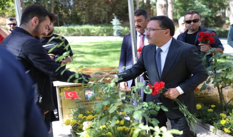 Vali Gökmen Çiçek, beraberinde protokol üyeleri ile birlikte, Kartal Asker Şehitliği’ni ziyaretlerinin ardından, Polis Şehitliği’ne geçildi. Kur’an-ı Kerim tilaveti ve yapılan duanın ardından şehitlerin kabirlerini ziyaret edilerek, karanfil bıraktı. Şehitlik ziyaretlerinin ardından Vali Gökmen Çiçek ve protokol üyeleri, Türkiye Muharip Gaziler Derneği Kayseri Şubesi’nde gaziler ve aileleriyle bir araya geldi. Dernek binasında gaziler ve aileleri ile sohbet eden Çiçek, “Bizler devlet olarak sadece bugün değil, her zaman yanınızdayız. Yanınızda olmaya da devam edeceğiz. Sizleri bizim gururumuzsunuz” dedi.