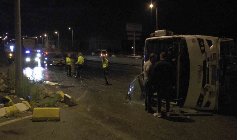 Kayseri’nin Melikgazi ilçesinde gece vardiyasına giden işçi servisinin devrilmesi sonucu 6 kişi yaralandı.