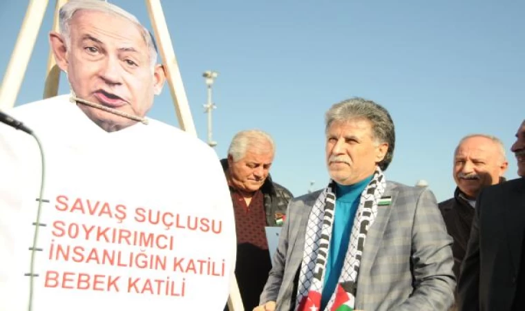 Kayseri’de İsrail protestosu; Netanyahu’nun maketi asıldı