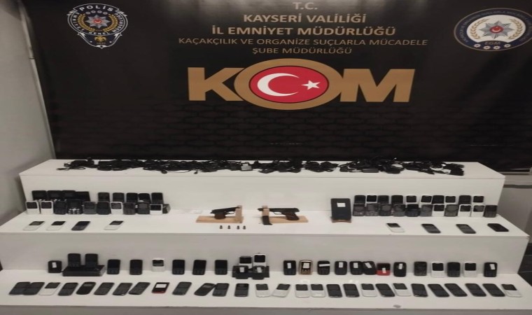 Edinilen bilgiye göre, Kayseri İl Emniyet Müdürlüğü Kaçakçılık ve Organize Suçlarla Mücadele Şube Müdürlüğü ekipleri tarafından kaçakçılıkla mücadele çerçevesinde 4 farklı adreste çalışma yaptı. Ekipler tarafından suça karışan 4 şüpheli gözaltına alınırken, adreslerde arama yapıldı. Yapılan aramalarda; 2 adet ruhsatsız tabanca, 108 adet kaçak cep telefonu, 596 adet telefon aksesuarı, 14 adet elektronik sigara, 11 adet elektronik eşya, 80 bin dal doldurulmuş makaron, 63 kilogram tütün, 100 adet sökülmüş TAPDK bandrolü, 1 adet elektronik sigara sarma makinası ele geçirildi.