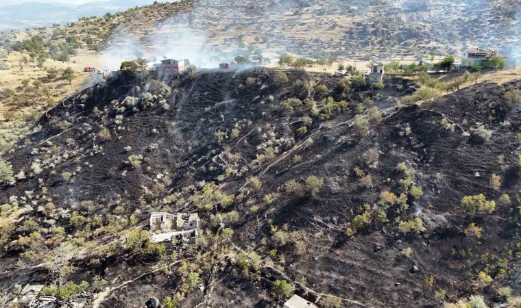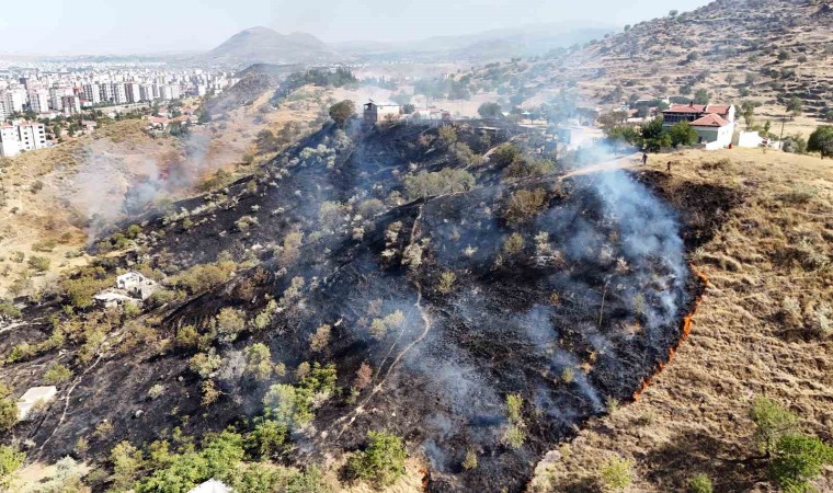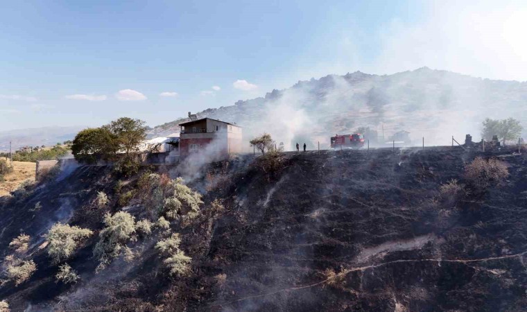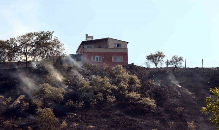 Kayseri’nin Melikgazi ilçesinde dağlık alanda çıkan anız yangını kısa süre içerisinde büyüdü. Alevler müstakil evin etrafını sararken, o anlar havadan görüntülendi.