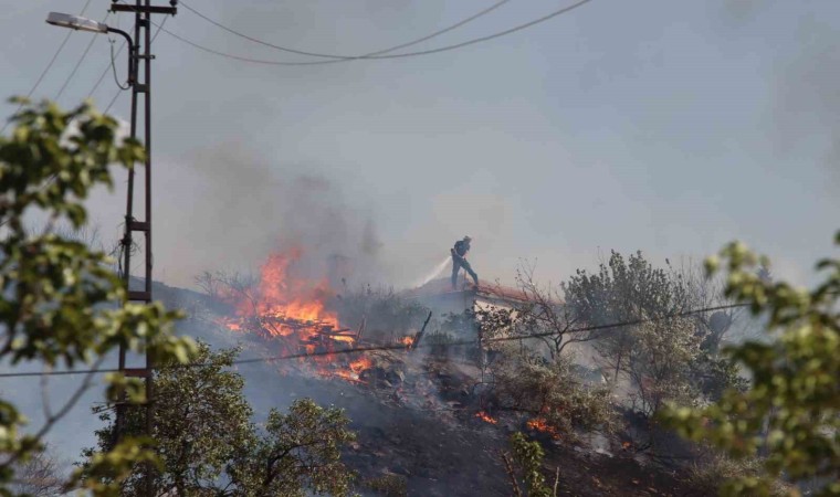 Edinilen bilgiye göre, ilçeye bağlı Esentepe Mahallesi’nde bulunan dağlık alanda henüz bilinmeyen bir nedenden dolayı anız yangını çıktı. Yangın kısa süre içerisinde büyürken, dağlık alana yayıldı. İhbar üzerine bölgeye polis, çok sayıda itfaiye ve TOMA’lar sevk edildi. Polis ekipleri çevrede güvenlik önlemi alırken, itfaiye ve TOMA’lar da alevlere müdahale etti. Bu sırada müstakil evin etrafını saran alevler, sakinleri korkuttu. Yükselen alevler, ekiplerin anında müdahalesi ile eve sıçramadan söndürüldü. O anlar da havadan görüntülendi.