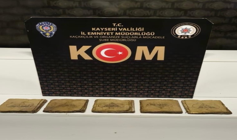 Edinilen bilgiye göre, İl Emniyet Müdürlüğü Kaçakçılık ve Organize Suçlarla Mücadele Şube Müdürlüğü ekiplerince yapılan çalışmalarda çevre illerden temin ettikleri tarihi eserleri Kayseri’de satacakları bilgisi alınan A.A., N.E., M.A., A.S., A.E., S.B. ve A.B. yakalandı. Yapılan aramalarda 5 adet yaklaşık bin 800 yıllık Aramice dilinde yazılmış Mısır ve Yahudi dönemlerine ait el yazması kitap, daha önce kazı yapılan alanda bir kısmı çıkarılmış 1 adet Roma İmparatorluğu dönemine ait lahit mezar ele geçirildi. Ele geçirilen tarihi eserler Kayseri Müze Müdürlüğü’ne teslim edilirken, olayla ilgili 7 kişi gözaltına alındı.