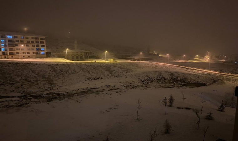 Kayseri’de akşam saatlerinde etkili olan kar yağışı sonrasında yüksek kesimlerde zemin karla kaplandı.