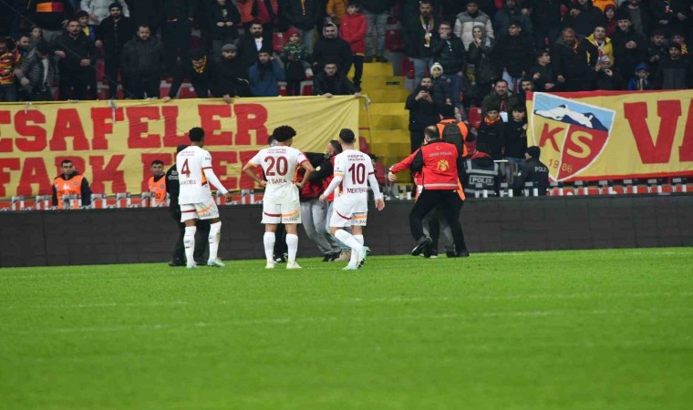 Trendyol Süper Lig’in 17. haftasında Kayserispor ile Galatasaray arasında mücadelenin 51. dakikasında sarı-kırmızılıların 3. golü bulmasının ardından Kayserispor tribünlerinde olaylar çıktı. Bu sırada sahaya giren bir taraftar Galatasaraylı futbolcular Fernando Muslera ve Davinson Sanchez ile fotoğraf çekinirken, güvenlik güçleri tarafından kovalamaca sonucu yakalanarak saha dışına çıkarıldı.