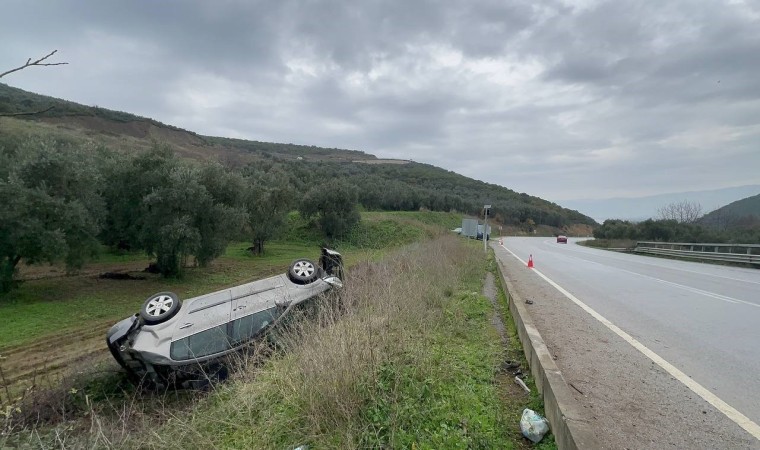 Bursa’da virajı alamayan otomobil, yerlerin de kaygan olması sebebiyle tarlaya uçtu. Kaza, arkadan gelen bir başka aracın kamerasına yansıdı. Otomobildeki 2 kişi, yaralı olarak hastaneye kaldırıldı.