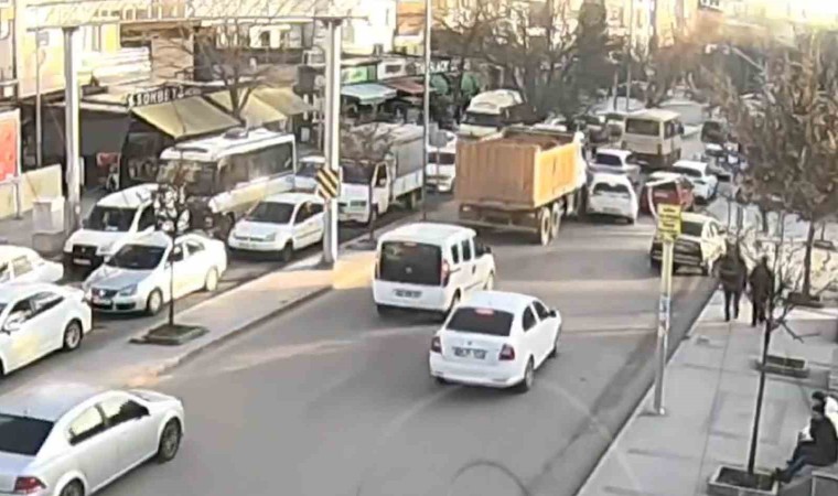 Terminal Kavşağı’nda meydana gelen kazada iki otomobilin çarpışması neticesinde, kaldırımda bekleyen bir vatandaşın yaşadığı panik anları kameraya yansıdı. Kamera kayıtlarında, Atatürk Bulvarı’nda seyir halindeki kamyonun önüne kattığı otomobili sürüklediği görüntüler yer aldı. Yine aynı güzergahta yaşanan kazada da otomobilin ticari taksiye arkadan çarptığı kameralarca görüntülendi.