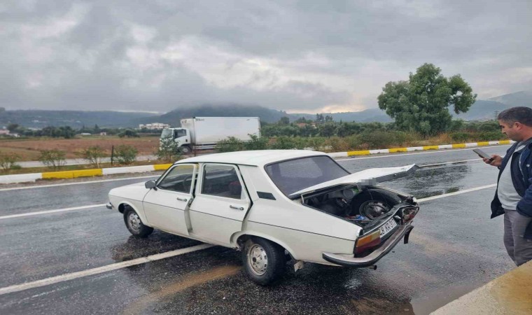 Muğla’nın Milas ilçesinde meydana gelen zincirleme trafik kazası güvenlik kamerasına yansırken, kamyonun çarptığı ve kazaya karışan diğer araç yağmur nedeniyle kayganlaşan yolda metrelerce kayarak durabildi.
