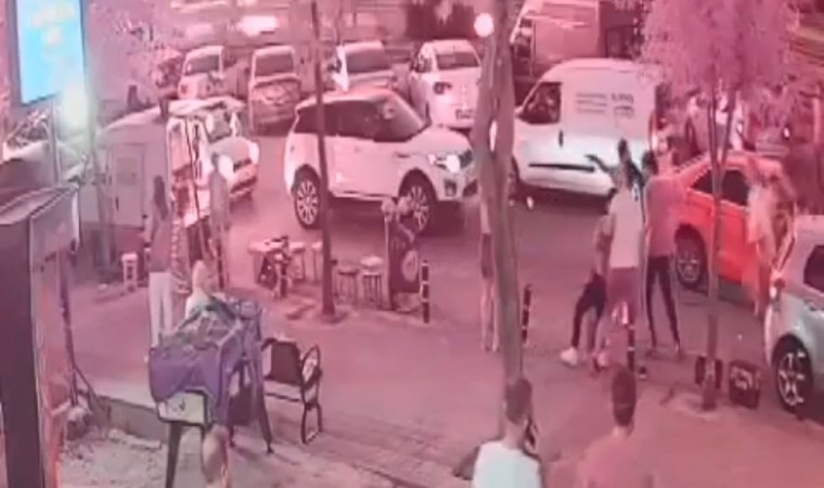 Kaza ve saldırı anları çevrede bulunan bir iş yerinin güvenlik kameralarına anbean yansıdı.