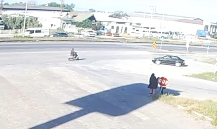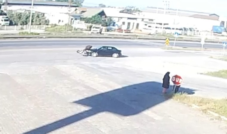 Antalya’nın Manavgat ilçesinde otomobilin elektrikli bisikletle çarpışması sonucu meydana gelen kazada 1 kişi yaralandı. Göz göre göre gelen kaza anı güvenlik kamerasına yansıdı.