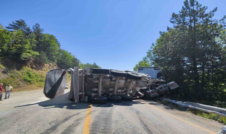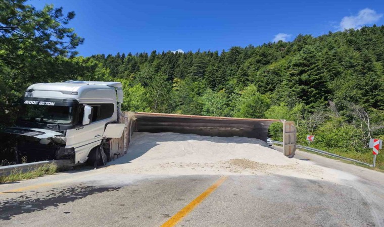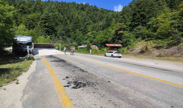 Karabük’ün Safranbolu ilçesinde kum dolu tır dorsesinin devrilmesi sonucu ulaşıma kapanan kara yolu yeniden açıldı.