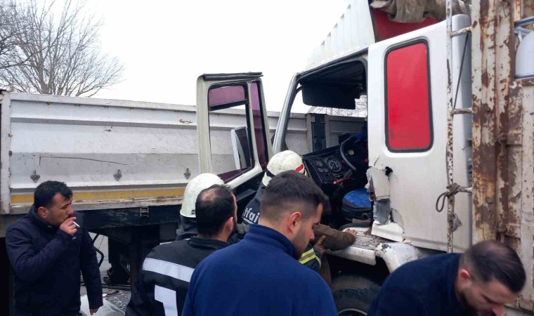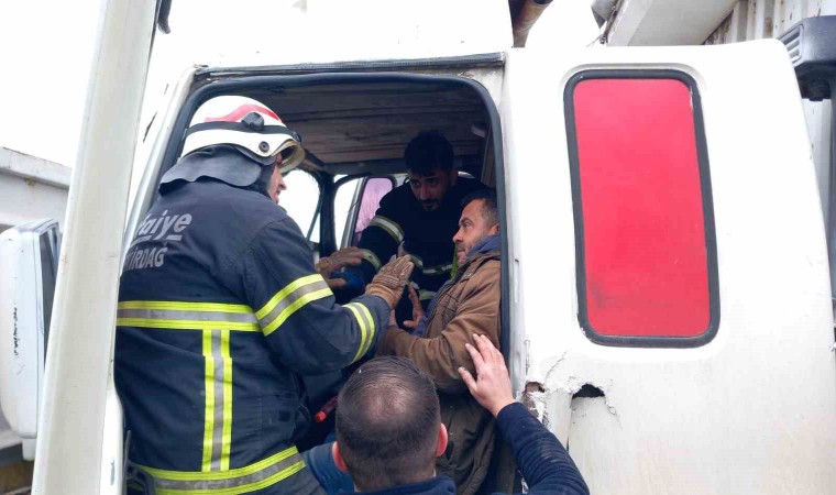 Tekirdağ Çorlu’da tır ile kamyon çarpışması sonucu araç içinde sıkışan kamyon şoförünü itfaiye kurtardı.