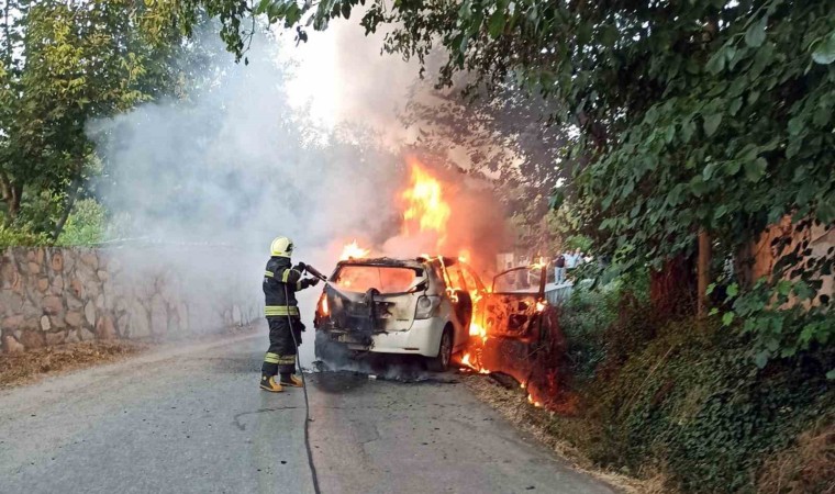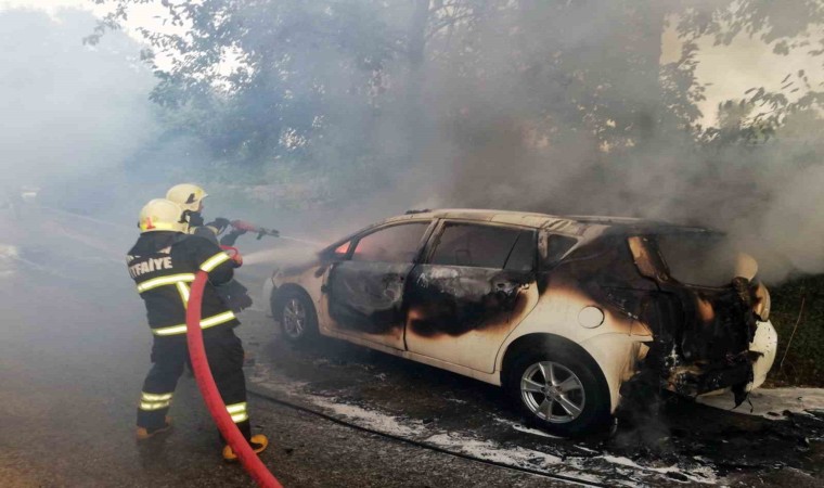 Muğla’nın Menteşe İlçesi Karabağlar Yaylası içinde yanan araç, itfaiye ekipleri tarafından söndürüldü.