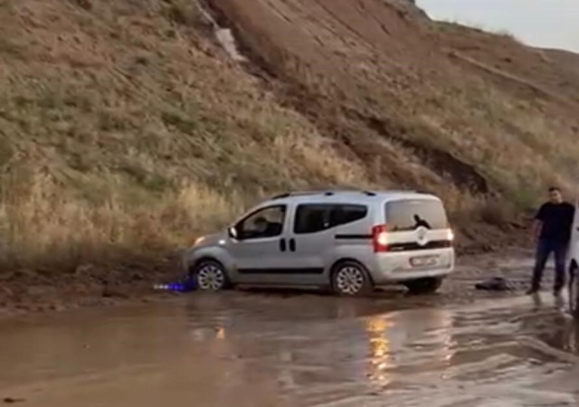 Hafif ticari araç, çamura saplandıktan sonra arama-kurtarma ekibi tarafından halatlar kullanılarak kurtarıldı. Bu olay sonucunda sadece maddi hasar meydana geldiği belirtildi.