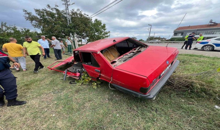 Sinop’ta Fiat Tofaş marka otomobilin yağmur suyu kanalına çarptıktan sonra takla atarak kağıt gibi dağıldığı kazada, sürücü ağır yaralandı.