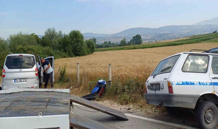 Bolu’da tali yoldan önüne çıkan araca çarpmamak için manevra yapan otomobil, tarlaya uçtu. Meydana gelen kazada sürücü yaralanırken, otomobil alev aldı.