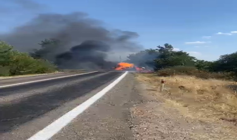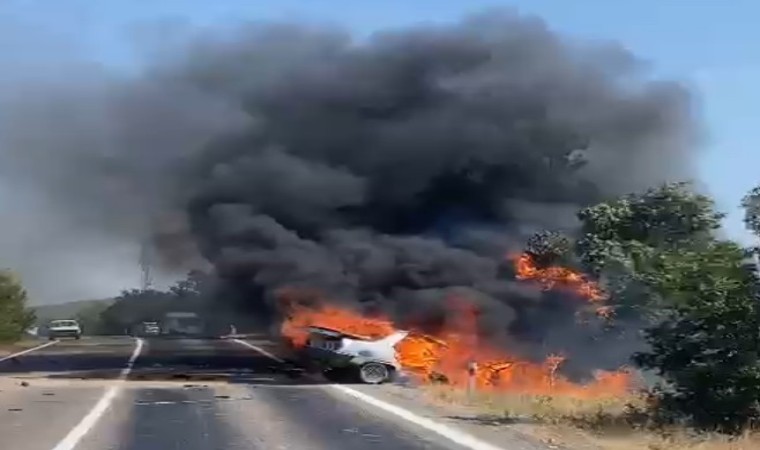 Manisa’nın Akhisar Gördes karayolunda iki otomobilin kafa kafaya çarpışması sonucu otomobillerden biri alev topuna döndü. Kazada 2’si çocuk 5 kişi yaralandı.