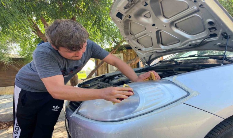 Antalya’nın Serik ilçesinde trafik kazası geçirince bacağından yaralanıp oteldeki işini bırakmak zorunda kaldı, 15 yaşında öğrendiği mesleğine geri dönüp aldığı aparatlarla araç farlarını temizlemeye başladı. Süleyman Uçar, "İş yok diye bir şey yok. Piyasada her yer iş. İş arayanlara işte iş" dedi.