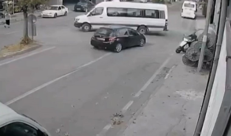 Bursa’da ara yoldan ana yola dikkatsiz çıkan servis minibüsü kazaya sebep oldu. Otomobil, minibüse çarpmamak için manevra yapsa da, kurtulamadı.