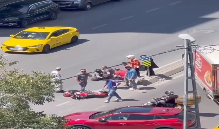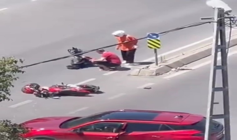 Kartal’da motosikletiyle kaza yapan kadın sürücü, kendi canı yerine motosikletine üzüldü. O anlar cep telefonu kamerasına yansıdı.