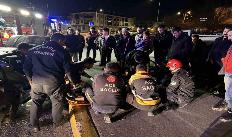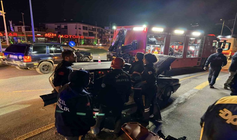 Sakarya’nın Adapazarı ilçesinde kavşakta hafif ticari araç ile otomobil çarpıştı. Otomobilin içerisinde sıkışarak yaralanan kadın, itfaiye ekiplerince kurtarılarak sağlık ekiplerine teslim edildi.