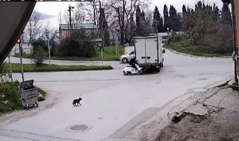 Sakarya’nın Adapazarı ilçesinde motosiklet yolun ortasında duran kamyonete çarptı. Sürücünün kaskı sayesinde yara almadan kurtulduğu kaza anı güvenlik kamerasına yansıdı.