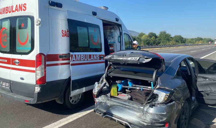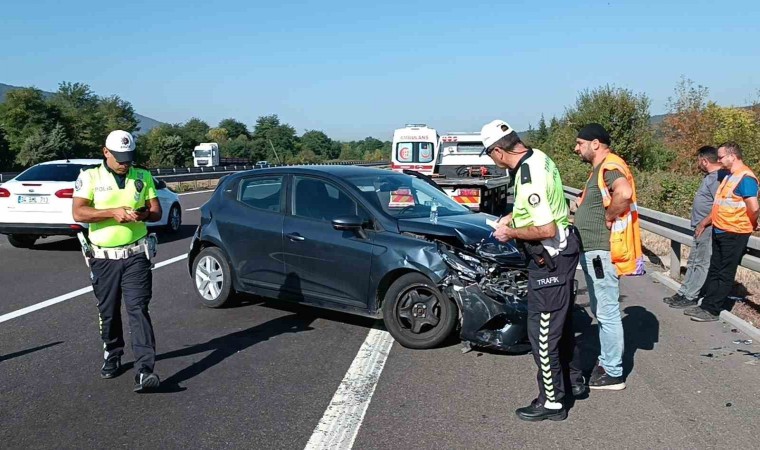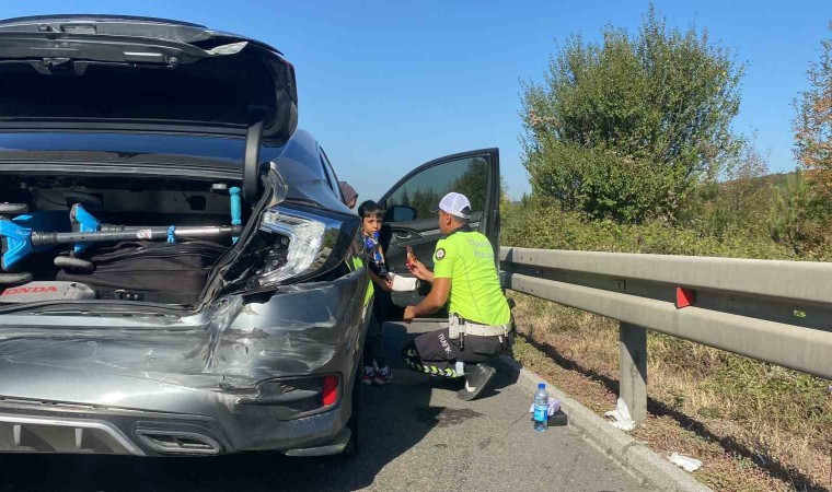 Düzce(İHA) – Anadolu Otoyolu Düzce kesiminde meydana gelen kazada 2 otomobil çarpıştı. Kaza yapan otomobilde bulunan 2 çocuk korkunca polis ekipleri tarafından çocuklara çikolata ve su ile sakinleştirildi.