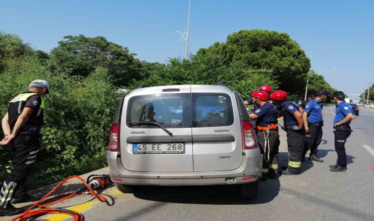 Kaza, Yunusemre ilçesi Mimar Sinan Bulvarı üzerinde meydana geldi. Edinilen bilgiye göre, Alper Alpaguter (22) idaresindeki 45 EE 268 plakalı hafif ticari araç, sürücüsünün direksiyon hakimiyetini kaybetmesi sonucu yoldan çıkarak Safran Çayı köprüsünün korkuluk demirlerine saplandı. Kazayı gören çevredekilerin haber vermesi üzerine olay yerine 112 Acil Servis ve trafik ekipleri ile Manisa Büyükşehir Belediyesi İtfaiye Dairesi Başkanlığı ekipleri sevk edildi. Sağlık ekipleri, sürücü Alpaguter’in köprünün korkuluk demirlerine saplanarak hayatını kaybettiğini belirledi. Haberi alır almaz kaza yerine gelen baba Yılmaz Alpaguter, oğlunun hayatını kaybettiğini öğrenince sinir krizi geçirdi. Sağlık ekiplerinin müdahale ettiği baba Alpaguter gözyaşlarına boğuldu. Ambulansa alınan baba Alpaguter hastaneye kaldırıldı. İtfaiye ekipleri tarafından sıkıştığı yerden çıkarılan Alper Alpaguter’in cansız bedeni morga kaldırıldı.