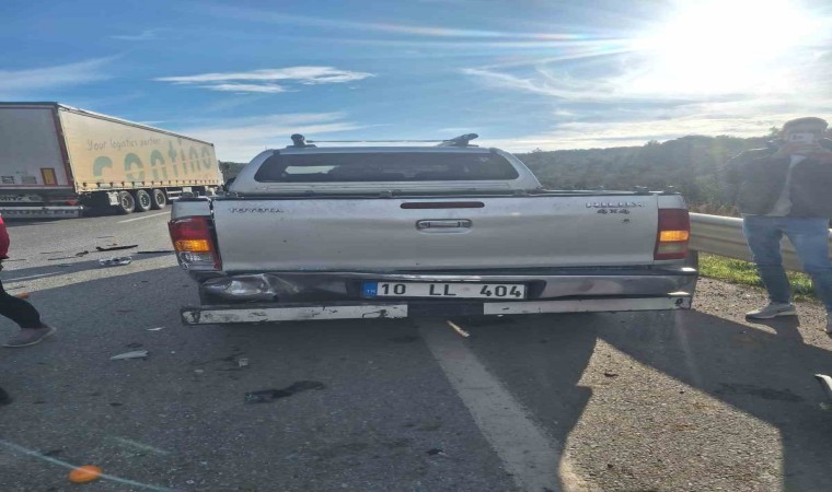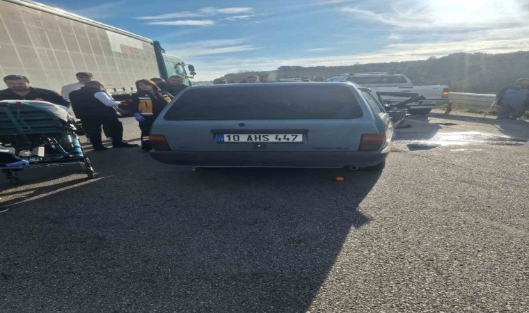 Edinilen bilgiye göre, Gömeç ilçesi Karaağaç Mahallesi E 87 karayolu üzerinde 10 AHS 447 plakalı otomobil, 10 LL 404 plakalı çift kabin kamyonete arkadan çarptı. Kazada Fiat Tofaş Kartal otomobilin çarpmanın etkisiyle ön kısmı tamamen hasar görürken, çift kabin kamyonetin sadece tamponunun yamulması ise dikkatleri çekti. Kazada S.T. yaralanarak 112 ambulansı ile Burhaniye Devlet Hastanesine sevk edildi. Kaza ile ilgili soruşturma başlatıldı.