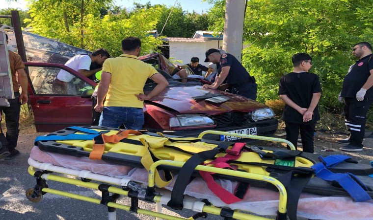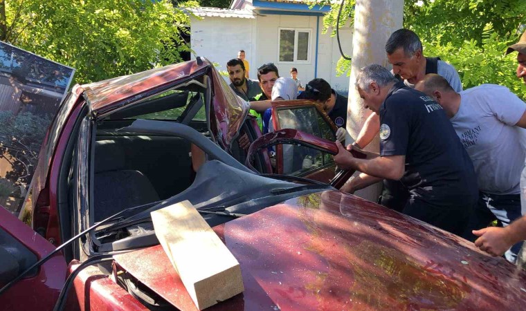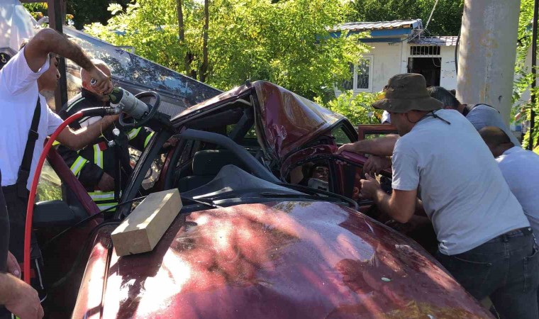 Elazığ’da sürücüsünün direksiyon hakimiyetini kaybetmesi sonucu elektrik direğine çarparak duran otomobilde sıkışan sürücü, itfaiye ekiplerinin 1 saatlik çalışması sonucu sıkıştığı yerden kurtarıldı.