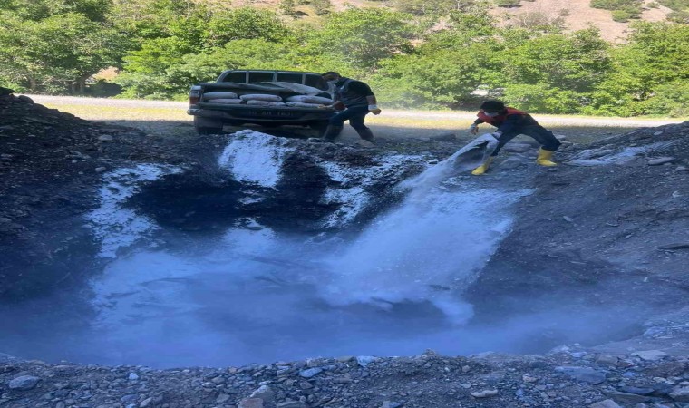 Hakkari’den 25 kilometre uzaklıktaki Üzümcü köyü yakınlarında dün meydana gelen kazada, koyun yüklü tır kontrolden çıkarak devrilmiş, onlarca hayvan ise telef olmuştu. Belediye ekibinin yardımı ile araç yoldan kaldırılırken, telef olan hayvanlar ise açılan bir çukura gömülerek üzerleri kireçle kapatıldı.