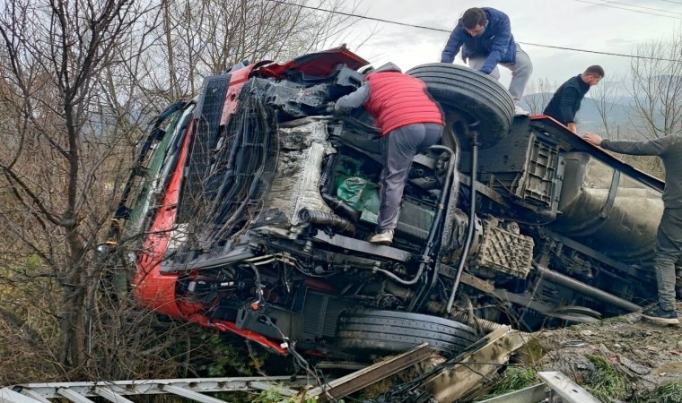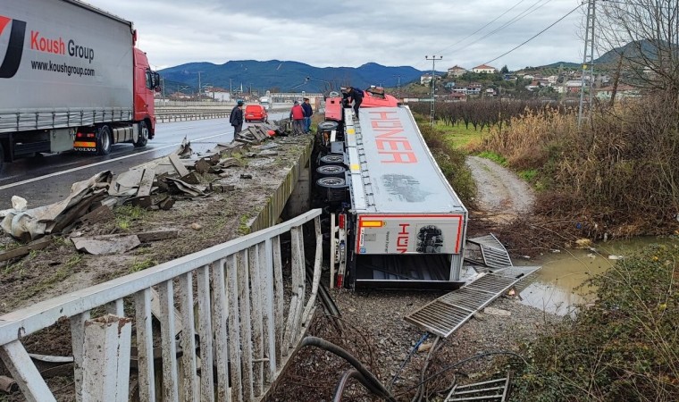 Sakarya’nın Pamukova ilçesi D-650 kara yolunda kontrolden çıkan tır, bariyerleri aşarak yol kenarına devrildi. Kazayı gören bir kişi ise o anları adeta bir spiker gibi anlattı.