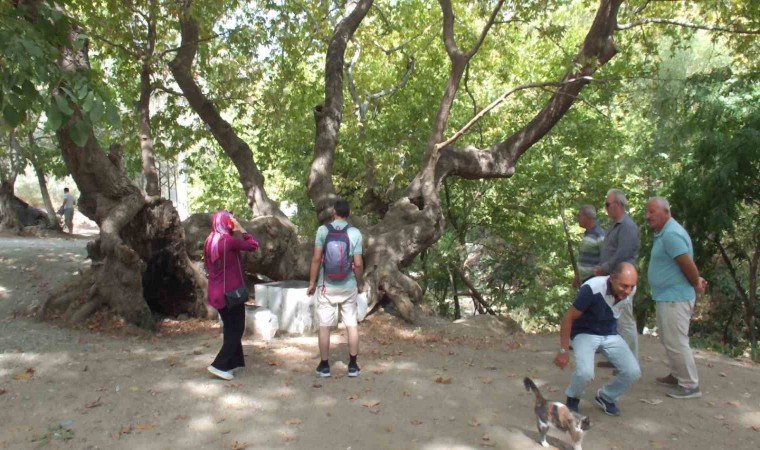 Edremit’in Altınoluk Mahallesinde Kazdağlarının eteğindeki Şahinderesi Kanyonunun girişinde yer alan 750 yıllık çınar ağacı ilgi odağı oldu. Şahinderesi Kanyonuna gelen vatandaşlar, tarihi çınar ağacı ile fotoğraf çekmeden geçmiyorlar. Yere yatan ağacın gövdesi bir başka çınarın gövdesi ile birleşince ilginç görüntü ortaya çıktı. Çınarı görenler bol bol hatıra fotoğrafı çektirdi. Çınarı ilginç bulduğunu anlatan Turgay Karali, “ İstanbul Tuzla’dan geliyorum. İlk defa geliyorum buraya.750 yıllık bir ağaç. Çok da dikkat çekici. Devrilmiş gibi gözüküyor. Ama, alttan kaynak olmuş. Toprakla birleşmiş. Çok ilginç bir ağaç” dedi. Hamdi Mengi de, “ İlk defa geldik bu Şahinderesi Kanyonuna. İlk geldiğim yerde de bu ağacı gördük. Çok enteresan bir ağaç. 750 yıllık olduğu belirtiliyor. İki gövdesi var. Böyle enteresan ağacı ilk defa gördük. Hayretler içindeyim yani. Şahinderesi Kanyonunu herkesin görmesini isterim” dedi. Kemal İşi ise, “ Çınar ağacını ilk defa gördüm. Birde ikisi birleşmiş gibi gözüküyor. 750 yıllık olduğu söyleniyor. Çok dikkatini çekti” diye konuştu. Kaan Tuna da, “ 750 yıllık bir ağaç. İki ağaç herhalde birbiri ile kaynaşmış. Bayağı enteresan geldi. Deve görünümü desem, at figürümü desem. Tuhaf bir şey olmuş Ama, güzel de olmuş. Burada zaten gezilip görülecek Şahinderesi Kanyonu vardı. Bu da artı bir değer olarak bu gün karşımıza çıktı. İnsanların gelip görmesini isterim” dedi.