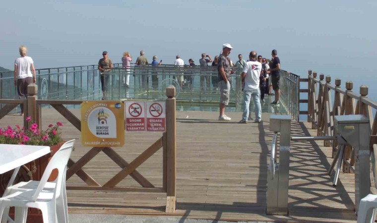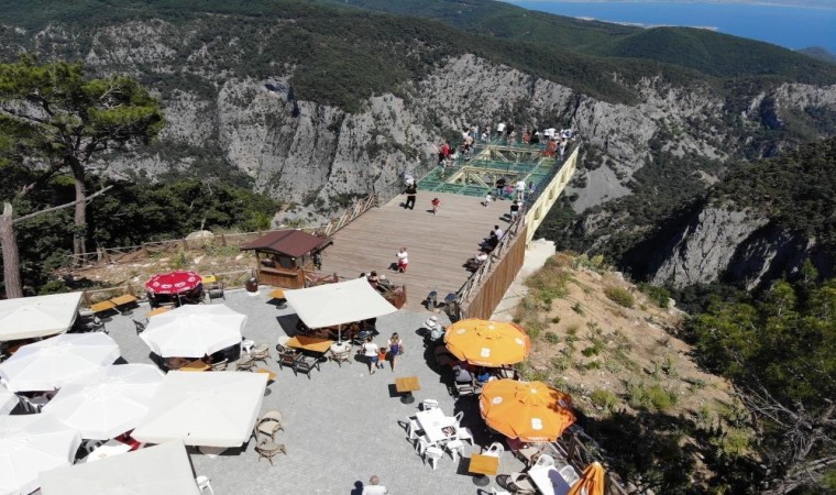 Balıkesir’in Edremit ilçesinde 836 rakımlı Şahinderesi Kanyonu üzerinde bulunan cam seyir terası yoğun ilgi görüyor. Balıkesir Büyükşehir Belediyesince yaptırılan cam seyir terasını sezonda 50 bin kişinin ziyaret ettiği açıklandı.
