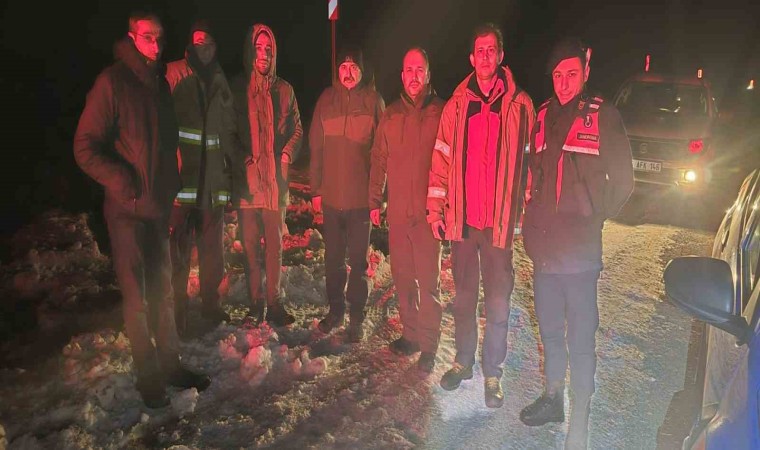 Ekipler, dört saat süren çalışma sonunda Mustafa A. ve Hasan M.’yi bulundukları yerden alarak güvenli bölgeye taşıdı. Karlı arazide çamura saplanan arazi aracı da iş makinesi yardımıyla kurtarıldı.