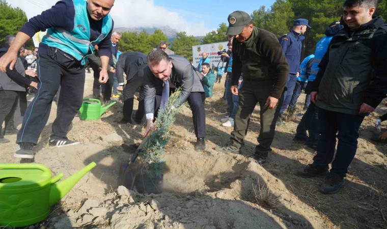 Kazdağları Atış Alanı mevkiinde gerçekleştirilen etkinlikte, Edremit Orman İşletme Müdürlüğü koordinasyonunda dağıtılan fidanları; öğrenciler, askerler, vatandaşlar ve protokol mensupları toprakla buluşturarak can suyu verdi.
