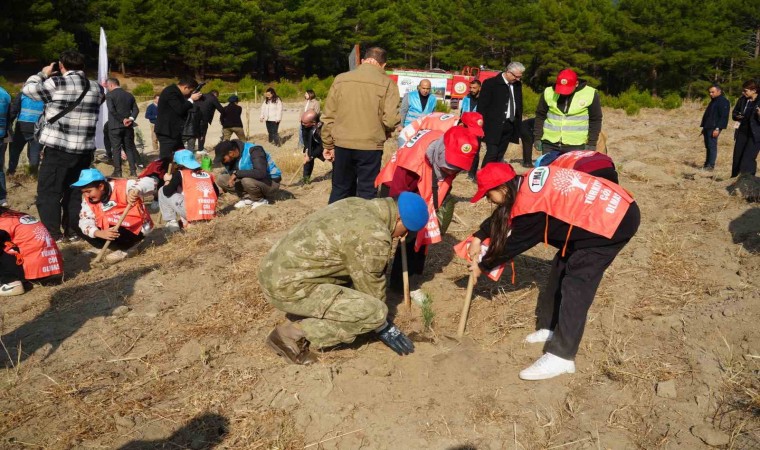 Saygı duruşunda bulunulması ve İstiklal Marşı’nın okunmasıyla başlayan etkinlikte, yaklaşık 5 dönümlük araziye bin 300 kızılçam fidanı dikildi.