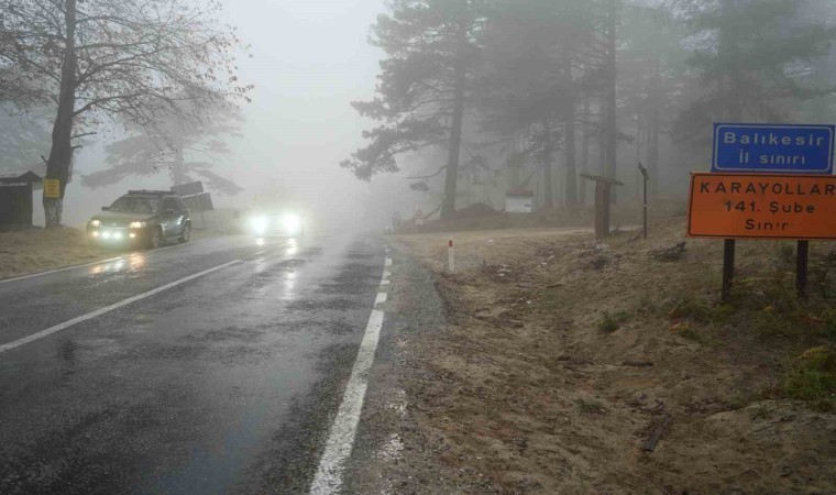 Balıkesir’de akşam saatlerinde Kazdağları bölgesinde etkili olan yoğun sis trafiği olumuz etkiledi.