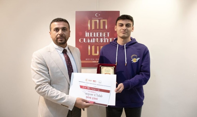 Karabük Üniversitesi öğrencisi Halil Tükenmez, “İlelebet Cumhuriyet İlelebet Türkiye Yüzyılları” konulu afiş tasarım yarışmasında mansiyon ödülü almaya hak kazandı.