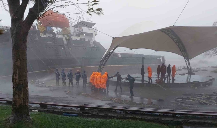 Zonguldak’ın Ereğli ilçesinde fırtınada bir kuru yük gemisi yardım çağrısında bulundu. Gemi ardından sürüklenerek kıyıya geldi ve karaya oturdu. Gemide hasar oluşurken, 13 mürettebat ekiplerce kurtarıldı.