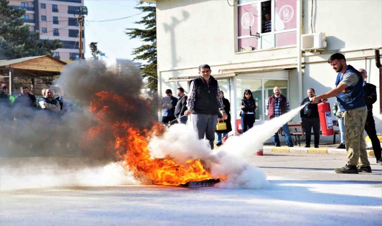 Ankara’nın Keçiören Belediyesi hizmet birimlerinde sivil savunma ve yangın söndürme tatbikatı düzenlendi.