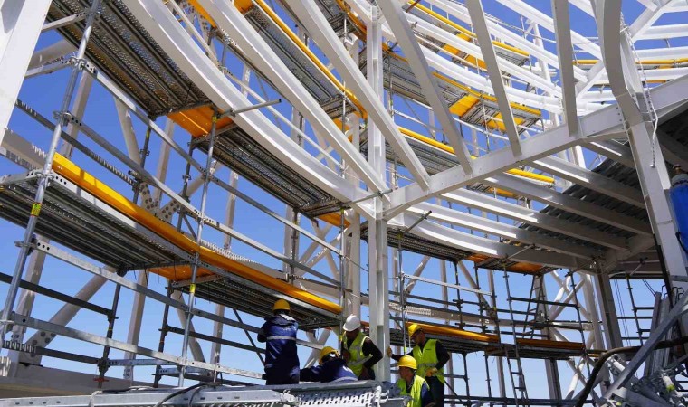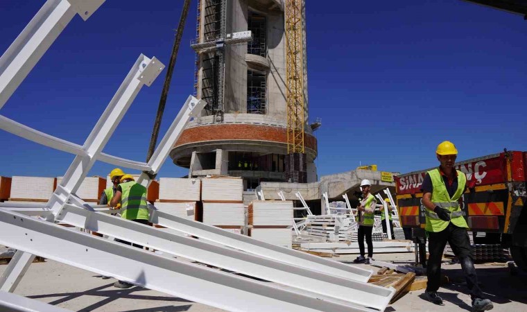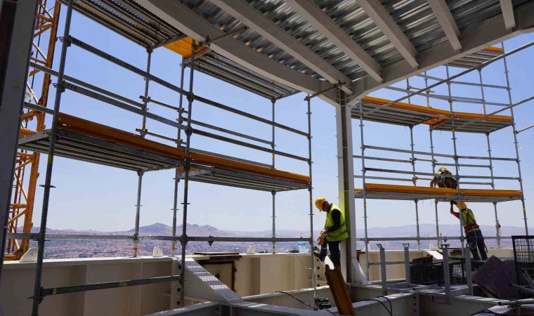 Cumhuriyet Kulesi’nde otopark, zemin kat, dış cephe ve kulenin zirvesinde yer alacak VIP katının imalatı eş zamanlı olarak devam ediyor. Devasa kulenin dış cephe imalatı için iş sağlığı ve güvenliğini önceleyen, ana yapıya sabitlenmiş yüksek güvenlikli çelik iskeleler kuruluyor.