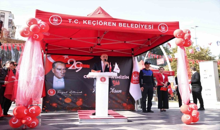 Konuşmasında Keçiören’de Cumhuriyetin 100. yılına özel birçok eser ve hizmet inşa ettiklerini de söyleyen Altınok, “Atatürk’ün Milli Mücadele’yi yönettiği merkez burası. Yıllar oldu, Atatürk’ün mücadele verdiği yeri park yaptık. Atatürk Botanik Bahçesi ismini koyduk. 3 kilometre uzunluğunda bir yürüyüş yoluna sahip. Bu mübarek kutsal toprakta Cumhuriyet tarihimizin en önemli yapılarından biri olan Atatürk Cumhuriyet Kulemizi inşa ediyoruz. 197 metre uzunluğunda. Bayrama yetiştirelim diye gece gündüz çalıştık ama çok özel işçilik gerektiriyor. 190 metrede montajlar yapılıyor. İnşallah Cumhuriyetimizin 100. yılında bu eserimiz hizmete girecek. Temelini attığımız bir diğer eserimiz de ‘Atatürk 100. Yıl Kapalı Spor Salonu’dur. Müze haline getirdiğimiz Çoban Mektebi de yine Atatürk Ankara Milli Mücadele müzesi ismini taşıyor” ifadelerini kullandı.