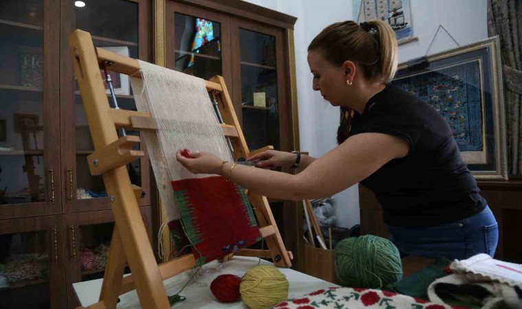 Estergon Kalesi’ndeki sekiz atölyeden biri olan dokuma atölyesinde halının yanı sıra kilim, heybe, örtü ve çanta türü çeşitli süs eşyaları da dokunuyor.